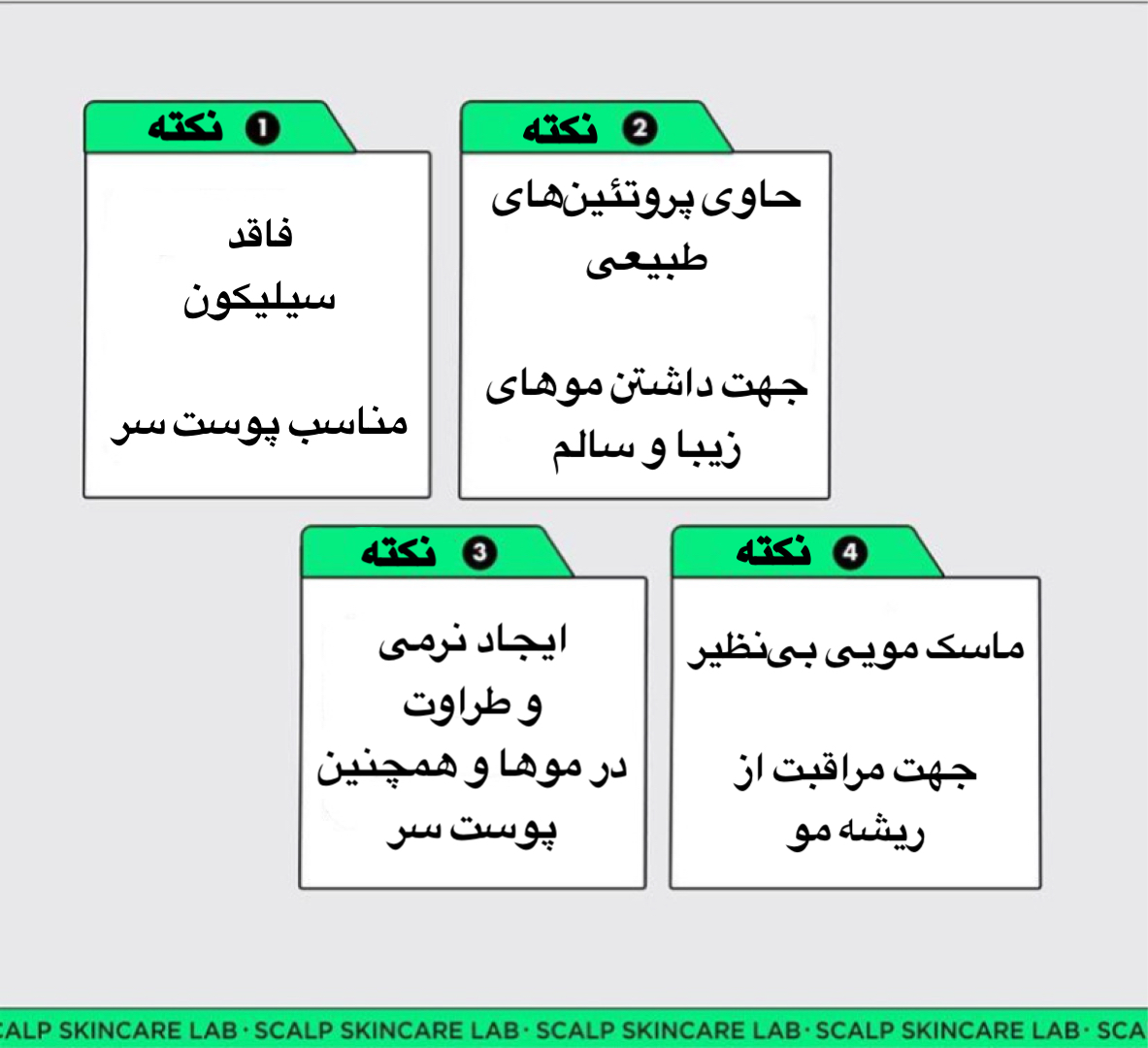 - بدون ایجاد چربی، چسبندگی و سنگینی روی پوست سر