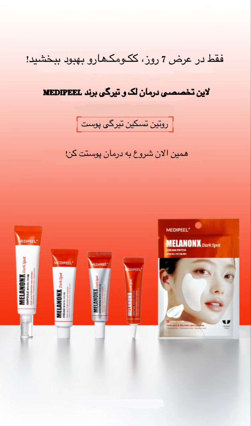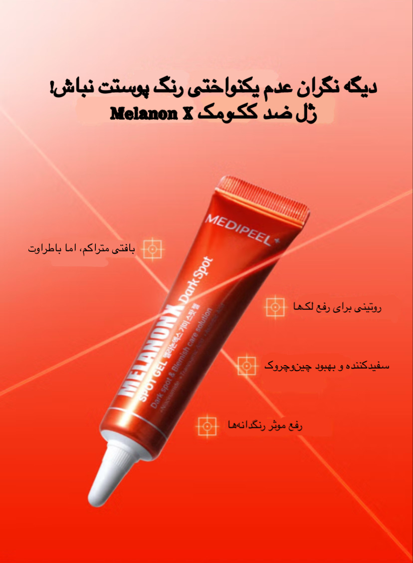 ژل ضدککومک مدل Melanon X برند MEDIPEEL با دارا بودن تمامی ترکیبات روشن کننده و ضدلک ممکن، محصولی بی نظیر جهت بهبود تجمع ملانین و رفع کک و مک به شمار میرود. بافت این ژل متراکم و غلیط بوده اما به هیچ عنوان روی پوست حالت چسبندگی و سنگینی ایجاد نمیکند. این محصول با مراقبت ویژه و اختصاصی از رنگدانه ها، پوست شما را روشن کرده و تیرگی های تجمع یافته بر آن را از بین میبرود. از دیگر مزایای استفاده از این محصول میتوانیم به بهبود چین و چروک و رفع شلی پوست به واسطه دارا بودن رتینول در ترکیبات آن شاره کنیم. این ژل با تمامی تایپ های پوستی سازگاری داشته و در صورت نداشتن حساسیت به ترکیبات موجود در آن، تمامی افراد بدون نگرانی میتوانند از آن استفاده نمایند.